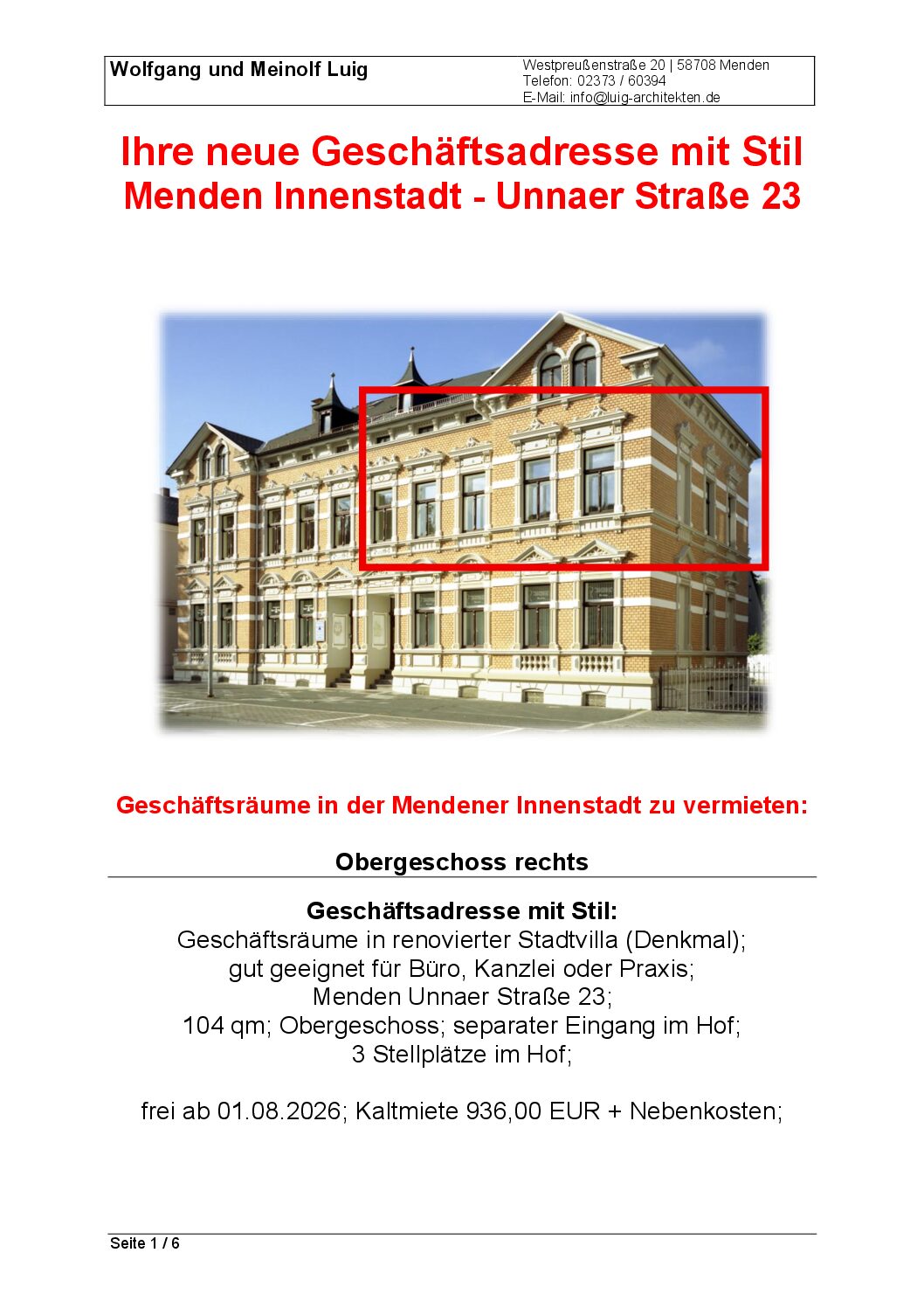 Anzeigenart Angebot Förderfähigkeit Nicht förderfähig Nutzfläche [m²] 104 Gesamtfläche [m²] 104 Stellplätze [Anzahl] 3 Kaution [€] 2808,00 Provision Keine Provision fällig Nebenkosten pro Monat [€] 404,00 Energieträger Gasheizung Etage 1. Obergeschoss Energieausweis vorhanden Nein Baujahr Baujahr: 1893; Renovierung: 2003 Zeithorizont Bald bezugsfertig